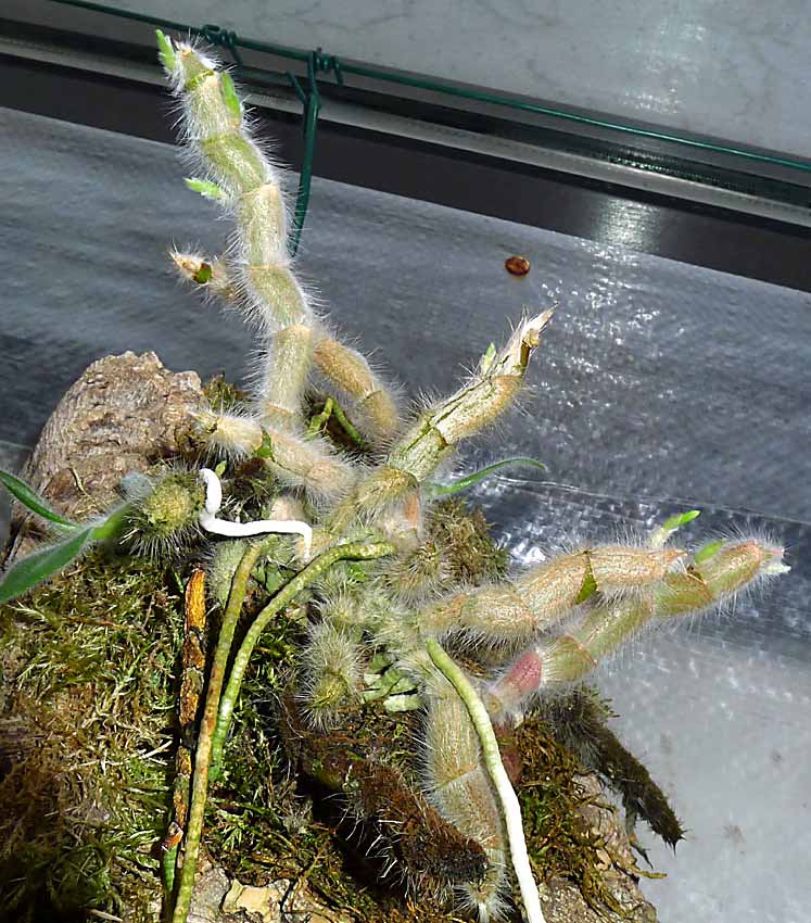 D. senile od pokojovek vykvetlo. Nakonec dalo pouze jeden květ. Je ale 2x přesazené a končí z borové kůry na korku s trochou mechu. Nasadilo ale bez svícení a má květ cca o 20% větší než to velké.