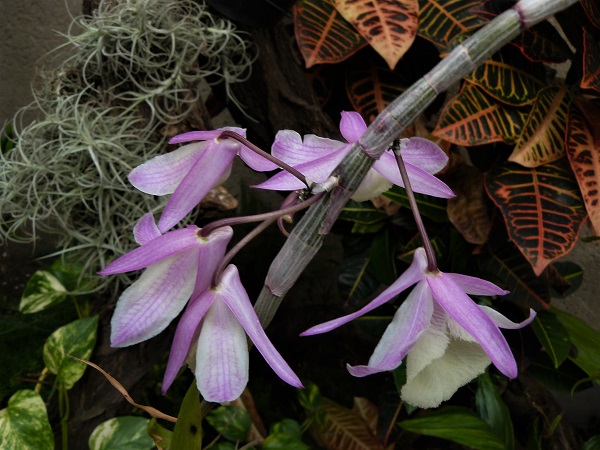 Tak se obávám, že Dendrobko výše není primulinum. Existují dvě Dendrobia, která jsou si neskutečně podobná a to D. primulinum a D. aphyllum nebo synonymem pierardii. Mám obě. Tak nějak si člověk netroufá je přesně rozlišit ale snad prý D. primulinum je vzrůstově menší a D aphyllum je mohutnější. Řekl bych, že primulinum má o něco málo tmavší zabarvení a aphyllum má i o něco málo větší květ. Posuďte sami a to nejen podle fota květů ale i celých rostlin. To v průhledném květináči a mohutnější by mělo být aphyllum.