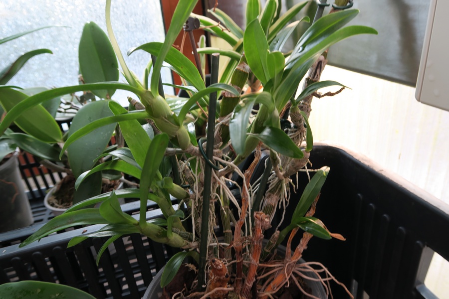 Jozka, doporučil bych odstranit tu podmisku pod květináčem. Yamamotovy hybridy potřebují před zalitím suchý substrát !! Po důkladném zalití (často se tyto rostliny namáčejí) by měla voda odtéct během hodiny a rostlina proschnout do 3 dnů. Tato frekvence vysychání rostliny jí udržuje kořeny v dokonalém stavu. Velikost květináče na velkou rostlinu s 3-5 pahlízami by neměla být větší než 10 cm. Přes léto pověsit ven do mírného stínu. Pokles teplot mezi dnem a nocí rostlině neuvěřitelně prospívá.