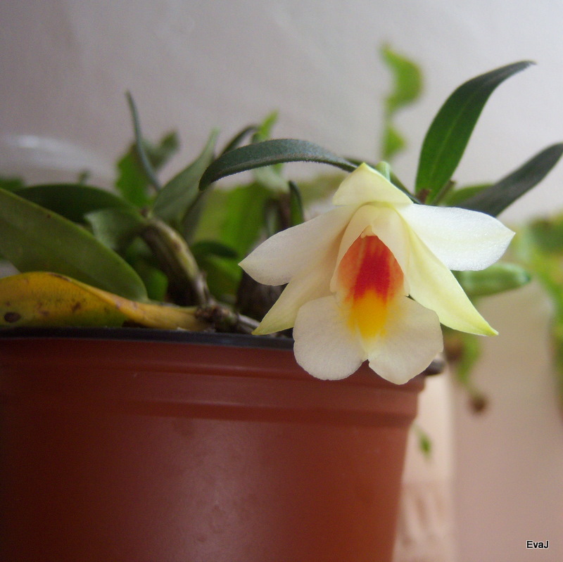 Dnes začalo rozkvétat, má ještě tři poupata. Nejsem si zcela jistá, zda to není Den. margaritaceum, ale Rölke mi ji vloni prodal jako Den.bellatulum. Takže ráda si přečtu názory zkušenějších.