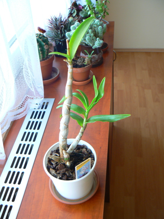 Dobrý den, prosím o radu. Mám doma Dendrobium "Berry Oda" a moc se mu nedaří. Snažila jsem se o něj pečovat stejně jako ostatní dendrobia typu phalaenopsis, ale zřejmě to nebude ono. Na původní hlíze opadaly listy, nová hlíza sice vyrostla, ale nevypadá moc zdravě a je spíše zakrslá. Všechny orchideje mám na JV okně. Z diskuze tady jsem vydedukovala, že asi bude potřeba pečovat o něj s klidovou fází. V zimě mám na okně kolem 15 stupňů, v létě i třeba 28. Poradíte mi někdo s péčí v panelákovém bytě? Okna máme JV a SZ směrem. Přikládám foto aktuálního stavu.