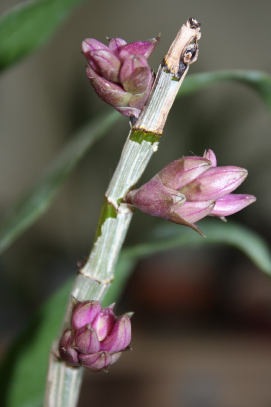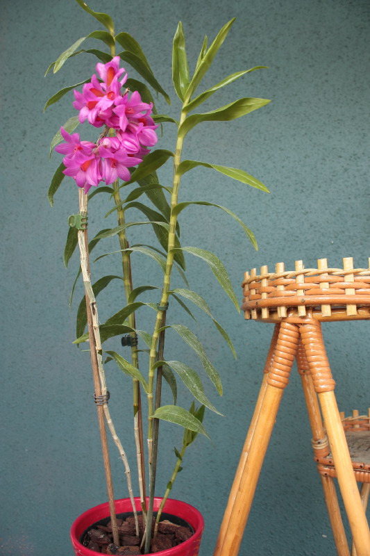 Miro, v podstate ani moc nie, len asi pred 2 mesiacmi som ho "vyhodila" na 2 týždne na svetlé schodisko pri okno na SZ stranu, kde teplota cez deň bola max 17-18 st. v noci možno tak 15-16, rozhodne nie menej ako 14. Tomu som prispôsobila zálievku, ale nesušila som ho ako trebárs iné Dendrobiá. Inak je v obývačke pri normálnej izbovej teplote a na leto ide von na pritienené miesto na JV-balkóne. Celkove sa mi vidí trošku náročnejšie na vodu, ale nie nejako extra a kvitnúť bude opäť na starej holej pahluze. A nerosím ju na listy, ale pokial je normálne v obývačke tak obdeň jej jemne porosím povrch substrátu. Substrát je taký stredne hrubý - zmes píniovky, dreveného uhlia a trošky polystzrénu plus trošku trhaného sfagna, na vrchu mám väčšie kusy píniovky. Poriadne ju namočím a nechám nasať raz týždenne a následne 1-2 dni ani ten povrch nerosím, kým preschne.