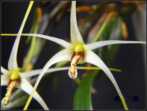 orchidka příbuzná s rodem Dendrobium, nějaký čas i mezi Dendrobia zařazená. Výskyt - Nová Guinea, 800-1500 m.n., pahlízky 4 cm, šířka do 1 cm, listy 4 cm, květ 8 cm; literatura uvádí až 10 cm. Nevoní, ale je nádherná. Přivezla jsem si ji z Drážďan od Elsner, poupata se začala vyvíjet až u mě ve skleníku a byl to tedy fofr. Dneska ráno se otevřela.