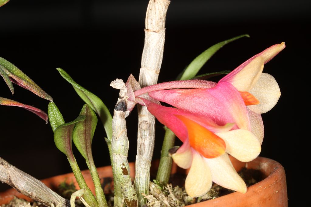 Toto sympatické křížení mě vykvetlo poprvé a má se čile k světu. Dělá 4 nové zimní pahlízky. Květ je zajímavý tím , že barvu přineslo D. cuthbertsonii zřejmě bicolor.