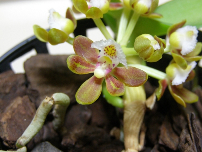 Na letošní výstavě v Č. Budějovicích jsem koupil od p. Vondruše lahvicku s Gastrochilus obliquus. Vylahvoval jsem pred 3 týdny a už je vidět přírůstek, první dva listecky. Tak snad moje první vylahveni dopadne dobře q