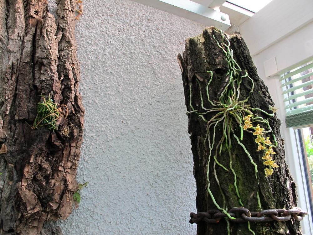 To ne .. :) .Tyhle kytky se mě líbí celkově kořeny i květy. V červnu 2012 jsem si objednala 3 Chiloschisty. Proto můžu trochu zhodnotit. Podle výskytu jsem je tak nějak navázala . Jedno je jasný ve skleníku nebo zz nikdy člověk přesně neví jakou má teplotu na konkrétním místě. Jednu jsem tenkrát navázala nahoru , roste nejlépe klidně si zavrtává kořeny do akátu. Mám z ní radost. Níž jsem navázala ostatní dvě. Bohužel lunifera „Black“ tuhle zimu umřela. Od začátku moc nerostla-škoda . Příště bych ji dala na jiný místo třeba ji neseděla struktura kůry . Zatím nevím jak vykvete nová lunifera je navázaná taky nahoře -snad to půjde. To že pokvete nic neznamená spíš budu ráda až začne růst.