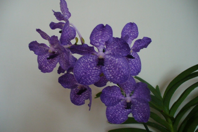 Tak uz mi ta Vanda Pagchong blue kvete cela.8 kvetu v mych podminkach je luxus.Nejvetsi 2 maji 11 cm.Ctverecky v kvetu.no uzasna.V.Sainsai uz se chysta na ovetreni se svymi 4 kvety.je to ted foceno.Jenda je ve stinu a jedna proti slunku.Jinak je takova tmave fialova.