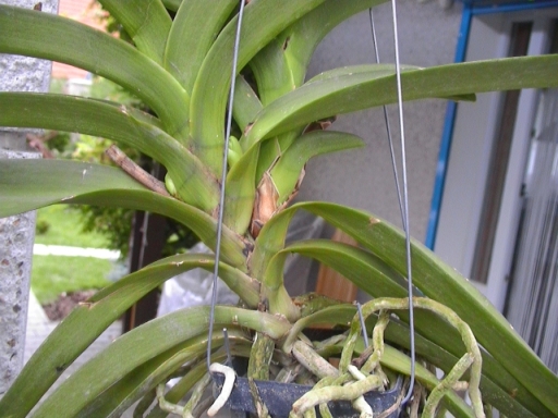 Potřebovala bych poradit. Pěstuju orchideje asi dva roky. Začala jsem jako většina lidí s phalaenopsisy. Poté, co jsem zjistila, že se jim u mě daří, začala jsem pokukovat po dalších druzích, takže jsem postupně přikoupila cymbidium, zygopetalum, nějaká dendrobia, oncidko, pár cambrií. S úctou t´měř posvátnou jsem chodila okolo vandy, nikdy jsem ale neměla odvahu si ji koupit. Na serveru zahrada.cz jsem vedla dlouhé diskuse o vandách s jedním zkušeným pěstitelem, který mi poskytl rady a své vlastní zkušenosti. Přesvědčil mně, že vanda až tak náročná není, a pokud se jí poskytne dostatek světla a vychytá se zálivka, mám vyhráno. A tak jsem si jednu na výstavě u Lukscheitera před 14 dny koupila. Je to Vanda Mimi Palmer x (V.insignis x denisoniana). Byla jsem tam předposlední den výstavy, vandy byly už přebrané, prohlížela jsem především kořenový systém. No na můj vkus nic moc, i ta moje má co dohánět, dost kořenů bylo polámaných, ale bez známek hniloby. Rozhodla jsem se vyzkoušet pěstování ve skleněné váze. Mám byt orientovaný všemi okny na jih, takže co se týká světelných podmínek, naprosto ideální. Vázu mám postavenou na okně u skla, jen za hodně silného nebo poledního slunce ji stavím asi 50 cm od okna a před záclonu, aby záclona trochu vandu přistínila. Vázu jednou za 5 dní naplním vodou a nechám cca 2 hodiny vandu pít. Pak už jen denně několikrát rosím. Používám výhradně dešťovou nebo destilovanou vodu. Tak a teď k mým otázkám. Předpokládám, že pokud se u mě bude vandě líbit, projeví to nejdříve rašením nových kořenů. Můžete mi říct, za jak dlouho to mohu očekávat? Zatím jí totiž narůstá jen jeden jediný kořen, ostatní mají zahnědlé olámané špičky. Druhá otázka - jaké hnojivo byste mi pro vandu doporučili? Opět děkuji za odpovědi