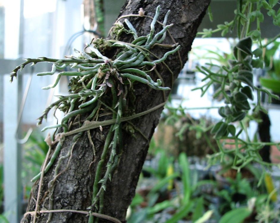 TAK vás jdu znovu nalákat na Chiloschisty.Když se přes "Pokojovky " nabídla možnost pár jsem si jich pořídila.Tato je Chiloschista segawai .Je na tak divným místě na akátu kde je focení strašně nepohodlné  .Ani na ni moc nevidím a najednou koukám že pokvete.Mám ji teprve od června2012-takže se uvidí...........