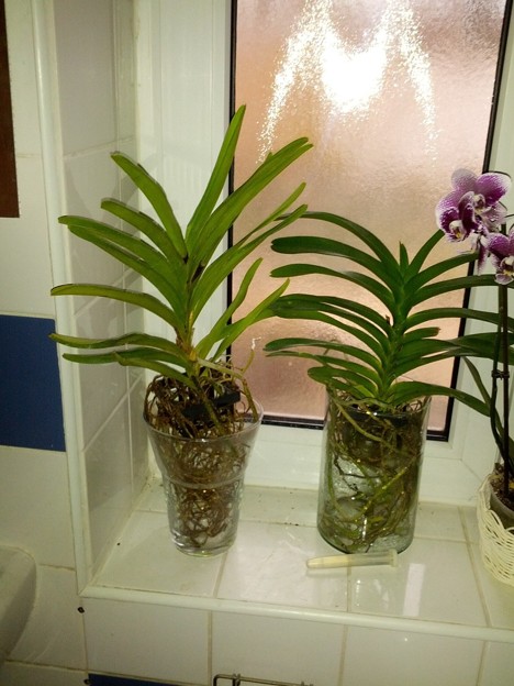 Vandy opravdu kvetou hlavně v zimě a v jarním čase, ale často vykvétají celoročně, podle kultivaru. Léto je ale období pro vegetační růst. Myslím že volně zasazená kytka se může sprchovat, či rosit. Kořeny byť květináčových kytek časem rostou směrem ven a vytváří pro vandy typickou masu. Není to phalaenopsis na kůře, takže snesou nevyrovnanou zálivku a občasné vynechávky. Jde o to nenechat kytku pomalu dehydratovat, ale zalévat tak akorát, jak to vyžadují podmínky daného kultivačního prostoru. Pokud jsou podmínky v normě, nemusí se v zimě vandy bez substrátu zalévat denně, ale od jara do léta je to vhodné. Narozdíl od skleníku netrpí vandy v bytě vysušováním z přehřátých prostor, a tak se nemusí zalévat tak často. Pro tyto rostliny je kořenový systém tipicky mohutný a visí v prostoru, takže se mi vázy nezdají moc přirozené.