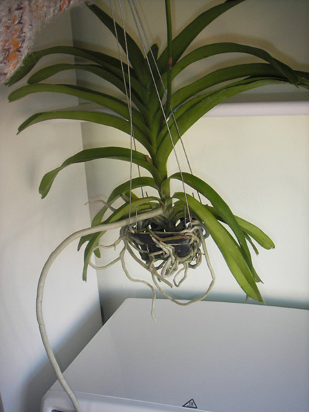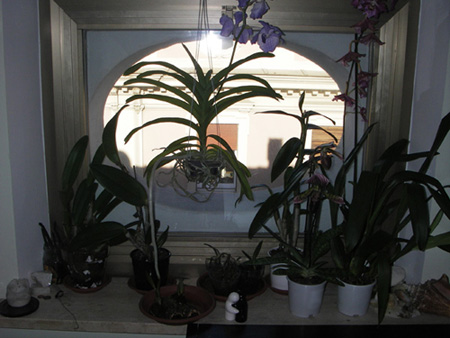 Ahoj vsichni, jsem tu nova. Zakloupila jsem Vandu v Lipencich u Prahy za 900kc. Cetla jsem zde, jak se o ne starate a zacla jsem taky tak. Ziju V Italii v Rime, vzdusna vlhkost je velka. Srazi se mi voda na oknech a bojuju kazdorocne s plisni na zdi.Nemam topeni jen maly radiator, kterym reguluji sama teplotu. Pres den mam tak 20-22 stupnu v noci tak 17. Mam ji zavesenou u okna. Dvakrat tydne ji namacim koreny do destilky v kbeliku a na velky nasadim ampuli. To na 30 az 40 min a pak ji necham okapat. Zatim nehnojim. Nerosim. Prikladam fotky. Spodni listy se mi nezdaji zrovna dobre. Taky se mi zda, ze ji tam rosili a strikali ji mezi listy. V trznici byla dost tma, procez kvet je ponekud bledy. Prosim poradte mi, jak se Vam zda, mam hnojit nebo ne? Taky se mi zda, ze byc chtela prisvitit. Cim prisvecujete? fotky jsou foceny s bleskem Diky K. Příloha:
