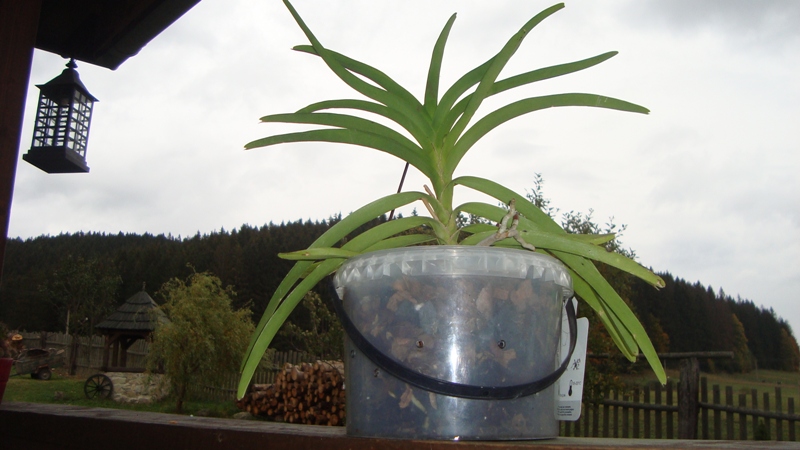 U Luda jsem viděla vandu v květináči v substrátu, ale i volně věšené, v Thajsku na fotkách taky oba typy, zvolila jsem kompromis -vázu. Každopádně gratuluju oběma ke kvetení. Vypadá to, že má MB-SK pěknou romantickou salaš  Ta moje vanda zatím od jara jen přirůstá na listech i kořenech. Hanko, co že to máš za hybrid?