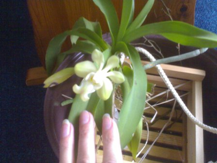 vanda denisoniana, jen jeden kvítek, ale nádherně voní a klube se další výhoneček, tak snad se zadaří a bude květů víc