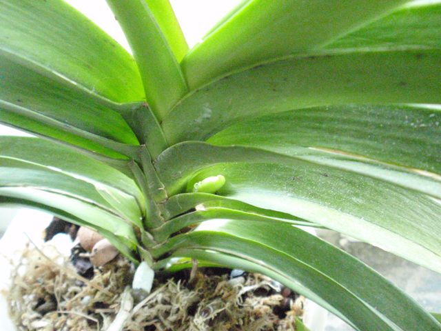 Ne zcela ještě rozkvetlý stvol Vandanthe Patricia Low.