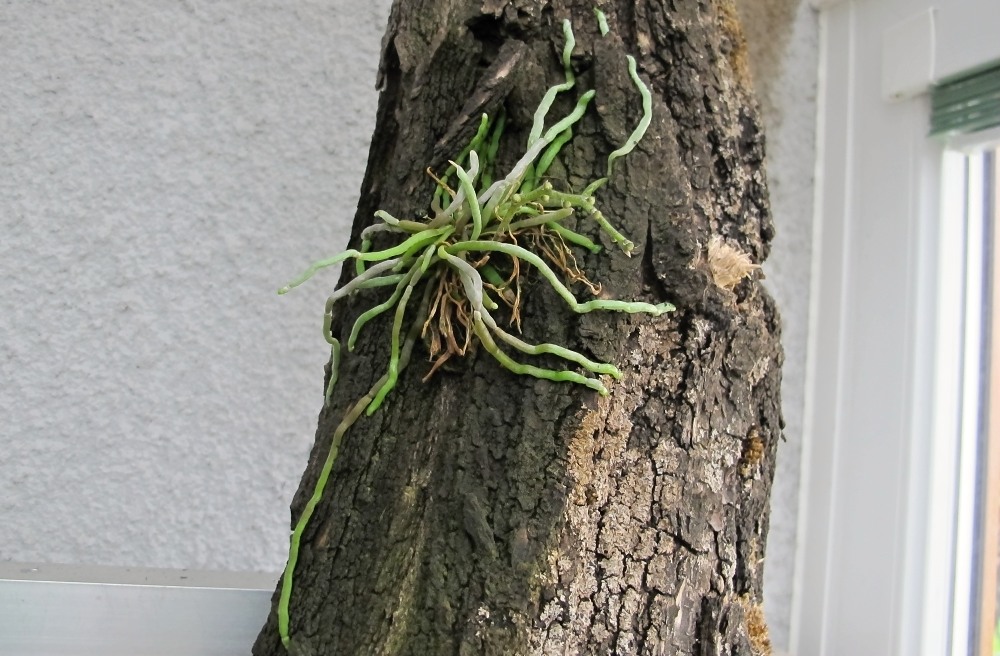Dnes mi přišel balíček z Thajska a byla tam přibalená orchidejka jako dárek - Chiloischista exuperei. Nemám s ní žádnou zkušenost, tak doufám, že ji neumořím. Je přivázaná na zajímavé hliněné podložce.