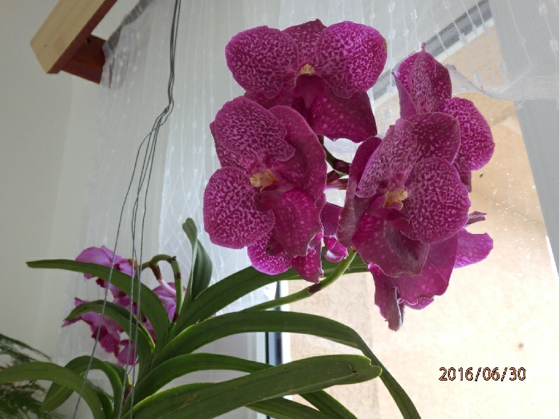 Tento rok som sa rozhodla Vandy neletnit vobec. Vzdy som mala pocit, ze im letnenie nevyhovuje. Hlavne ak sa na par dni ochladi a teploty skacu raz hore, potom velmi dole, akoby zbrzdili v raste a dlho im trvalo kym sa zase rozbehli. Nechala som ich v izbe na juznej strane. Prva modra ta nakvita stale po dobu 5rokov bez problemov co ju mam. Druhu mam kratko, od jari-mala by byt vonava. Tretiu mam 4 roky a konecne to vyzera ze mozno to bude kvitnut.