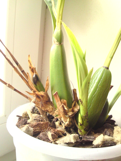 Paphio píše: Ten pysk už jiný nebude, je to taková kytka. No, právě, že když jsem to bollo koupila a kvetlo poprvé, tak ten pysk byl normálně rozevřený, přikládám fotku. Jak kvetlo zygo tvrdit nemohu, to vidím kvést poprvé. Ale mně teď jde spíš o ten růst vs. kvetení. Na fotce ty dvě veliké pahlízy mělo bollo při koupi, z jedné kvetlo. Pak přirostla ta menší vlevo a měla 4 květní stvoly a 14 květů (teď ji zřejmě budu muset oddělit, vzhledem k té černotě, co se na ní objevila). A teď vyrostl ještě slabší výhon a zase chce kvést. Zdá se mi, že někde dělám chybu, že by výhony měly více narůst, než pokvetou.