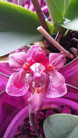 Dobrý den. Pěstuji klasické orchideje už léta, mám jich asi 40, ale teď se mi mezi nimi objevila jedna zvláštní. Vůbec nevím, že bych takovou kupovala. má tři středy. už mám od ní i sazeničku.