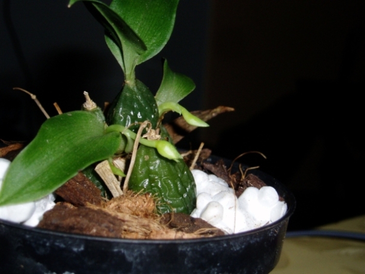 Tak mi začíná nakvétat tato drobná orchidejka. Snáší podmínky třeba jako Masdevalie. Takže chladno mokro, ale možná víc světla. Je to hybrid, už nevím kde jsem ho koupil a doufám, že se dobudoucna dostanu i k botanickým druhům. Nejvíce se mi líbí Promenaea stapelioides http://www.orchidspecies.com/promenstapelioides.htm http://farm3.static.flickr.com/2141/223 ... b1.jpg?v=0