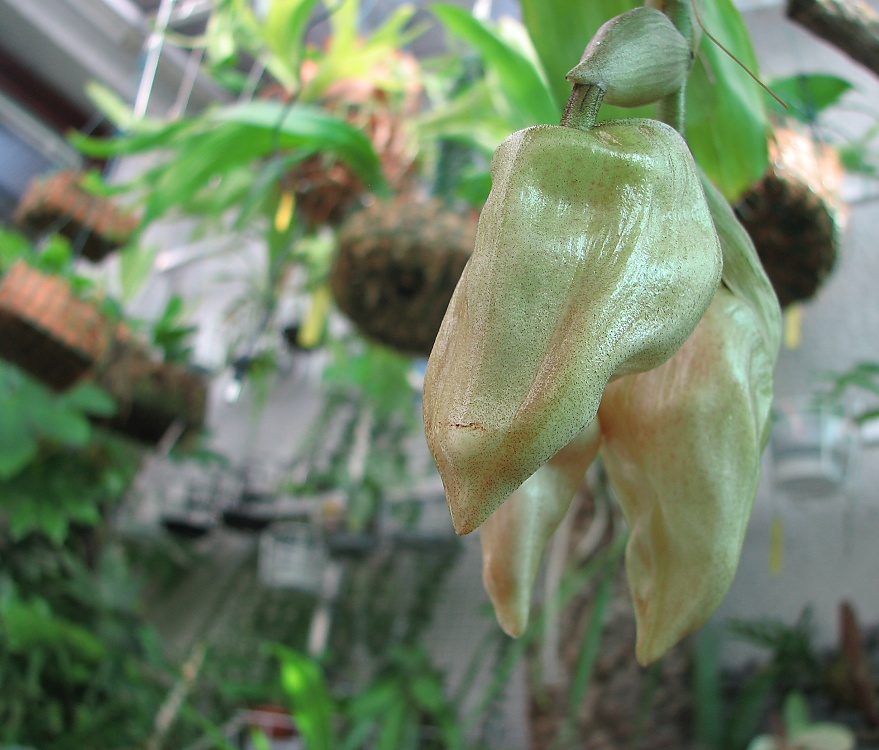 Coryhopea "Cutucu"-jsem možná kousek od prdnutí poupěte.  tak posílám mezičlánek ,protože teď poupata vypadají jak malý vetřelci nebo tak něco .