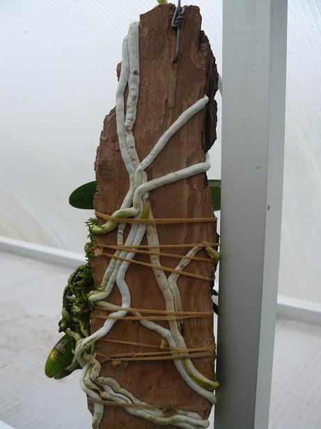 Radzak: Tuhle aclandiae jsem si koupil od terra koruny, protože mě zlákaly fotky z internetu, převážně navázaných kytek. Rostlina byla v květináčku s mokrým substrátem, s jediným kořenem, který po navázání brzy odešel, naštěstí ale udělala dost nových pěkných kořenů a jak to u navázaných kytek bývá, taky hodně trvanlivých. Než vykvete bude to pár let chtít, ale na parapetu v obýváku se zatím chová jako dost tvrdý a nezdolný druh, který výrazně sesychá až po delším vynechání zálivky, podobně jako třeba trichocentrum tigrinum, či laelia pumila, která mě rovněž tvorbou kořenů na holé větývce překvapila. Škoda že neroste rychleji....