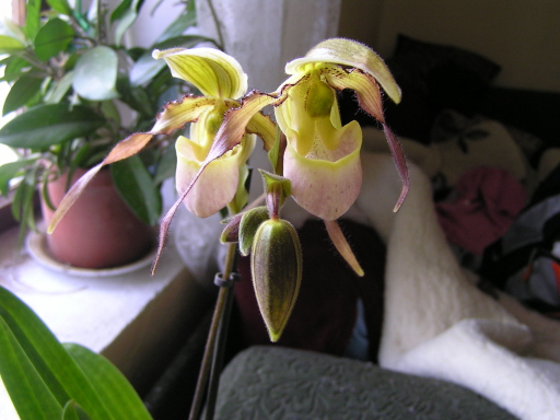 Jak hniloba postupovala, bohužel nevím. Neměla jsem příležitost kytku pravidelně kontrolovat. Dala jsem ji tchýňce loni na jaře, dlouho byla v docela dobré kondici, ale pak se dostala do podstatně chladnějších podmínek ... Domnívám se, že to mohla být ta, co ji na zde již zmíněném webu ( http://www.staugorchidsociety.org/cultu ... seases.htm) popisují hned jako první, původce Erwinia. Světle hnědá barva, hodně vodnaté. Zasaženy byly listy především těsně nad substrátem, choroba postupovala zvenku dovnitř růžice. Občas byl flek i někde výš na listu. Měla jsem v začátcích totéž na jednom papuči doma, ale zdá se, že odstraněním napadeného listu to snad skončilo.