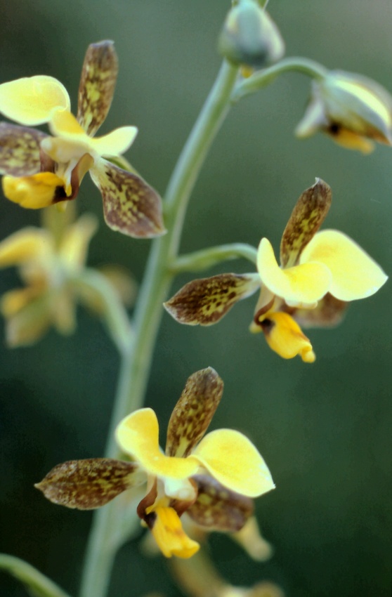 Tato orchidej rostla mezi kamením v pohoří Swatberg, směrem k městu Graaff-Reine (JAR), na velmi suchém místě v blízkosti velké tlustice (Crassula ovata, dříve portulacea). Byla to jediná rostlinka orchideje mezi jinými sukulenty a kamením v kopcovitém terénu. Lodyha je 50 cm vysoká, malé kvítky jsou žluto až nahnědle žíhané a tečkované (asi 1,5 cm).