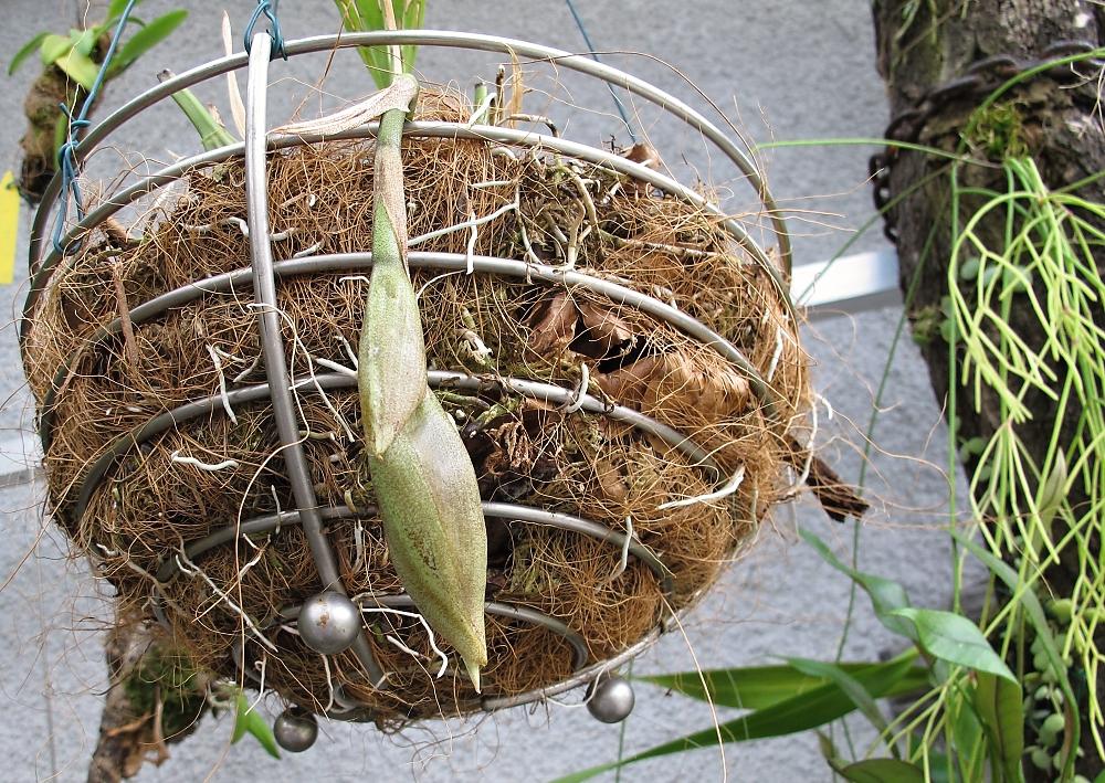 Protože se o tomto křížení bavíme tady ,tak to sem taky dám. Je to Coryhopea Cutucu ( Coryanthes x Stanhopea) pořád jsem si říkala -ta pahlíza je pitomá kam to leze zrovna do nevhodné mezery -tam by se asi nevešla .A on to bude květní výhon když se nakonec tvrdošíjně tlačí dolů.Minulý rok se tlačil až v květnu .Jo-líbí se mravencům pořád ji oblejzaj. Tak aby to nebylo uplně vedle něco o Coryanthes -jak je to u mě. Kytičky se mě přes zimu skoro zastavily v růstu.Listy už jsem ufikla-všechny.Začínají růst nové výhony starý pahlízky vypadají dobře -ale to ještě chvilku nechám jako neznámou věc,je to nejistý. Je takový hrdinství v mém poklesu teplot.