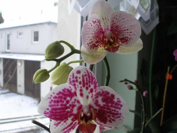 Na tom je ale zajímavé to, že tenhle phal mám více než 4 roky, kvete skoro pořád a to v různou roční dobu. Dosud měl květy pořád stejné, takové jaké jsou na starším výhonu. Miro, asi fakt ti skřítci.