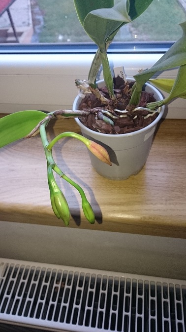 tak hlásím po velkém nadšení je tu VELKÉ zklamaní, už jsem bez poupat, nevím kde byla chyba, jestli jsem ji měla dát do většího tepla,(byla v místnosti kde se topí tak kolem čtvrté hodiny, tak jestli jí byla zima, četla jsem pokles teploty nevadí),nebo nevím, je to strašná škoda, byla jsem tak ráda, že bude kvést