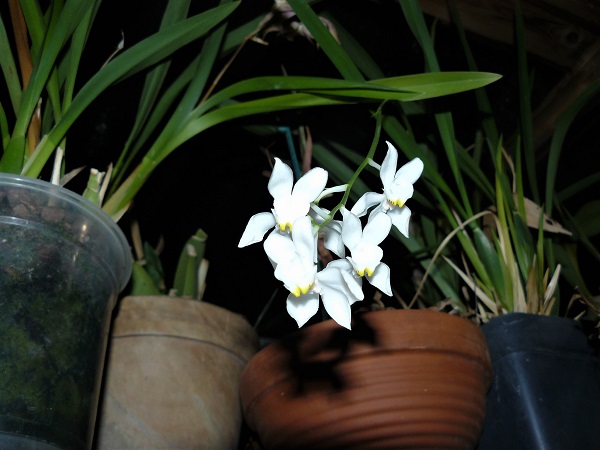 Míra píše: Ano je. Nic nezastříhávám. Na jaře jej pověsím do keře šeříku a to na plné slunce a každý večer to přelíznu hadicí. Jednou za 14 dní to celé namočím do kbelíku s hnojivem cca na 10-15 minut. V zimě zalévám jednou za 14 dní nebo porosím 1x týdně ale nehnojím až do února. V zimě je v teplotách v noci 12-13°C a přes den pokud nesvítí slunce tak okolo 19°C. Při slunci je ve skleníku i 23°C. Získal jsem menší oddělek cca před 5ti lety. Bohužel nejde nafotit úplně celý rozkvetlý, protože je na půlkulaté korkové kůře, takže je vždy vidět jen část. Míra: No je vidět, že su mu u Vás líbí a zvolený způsob kultivace umí ocenit. Přijde mi, že se jedná o hodně vitální kousek. Za 5 let bych ani tolik nečekal. Gratulace a vlastně trochu závist