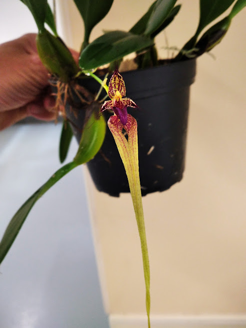 Tak jsem se dočkal, zpočátku to vypadalo, že to hned pokvete, hlízy byly velikosti frostii, ale fletcherianum se nedalo, tak to trochu narostlo, košík má 10cm. Zas taková hrůza to není.