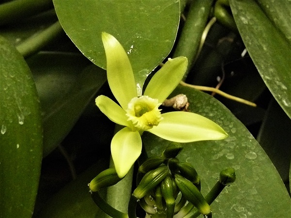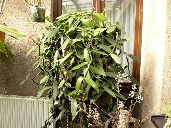 Václave, já ji zkoušel několikrát a nikdy mi nešla. Pořád jsem ji zkoušel v orchidejových substrátech a pak jsem to vzdal. Nakonec tady někdo Vanilku pěstoval a psal, že ji má vsazenou v normálním zahradnickém substrátu a krásně mu jde. Poprosil jsem ho výměnou o oddělek, zasadil ji do normálního substrátu a ještě jsem to s květináčem zapustil do země a tohle je výsledek. Myslím, že by se dala točit jako mučenka ale je trochu více masívní. I kdyby nekvetla je to hezká rostlina.