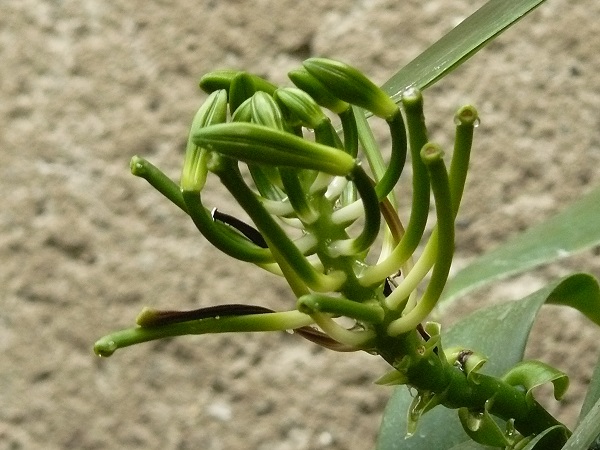 Tak přátelé. Ať jsem pátral jak jsem pátral, nikde jsem nenašel pořádně, jak přesně opylit. Teprve díky Virensovi, který netuším kde vyhrabal toto video https://www.youtube.com/watch?v=1RdoTcDD2EU, kde je to vidět dokonale se to snad povedlo. Ale nechci předbíhat. Jedno květenství je vzdálenější a blbě se k němu dostává a druhé je bližší a tam to krásně jde. I u toho blbě dostupného jsem se na několika o opylení pokusil a zjistil jsem, že asi květ, který není opylen za cca 10 hodin se zcela uzavře ale zůstane ve vodorovné poloze (obr1), kdežto opylený se uzavře a skloní se dolů (obr2). No defakto po více jak 10ti dnech je vidět, že snad se něco povedlo, protože na tom vzdáleném (obr. vzdálený) je jich jen pár, které jsem tak nějak vybalancoval a pokusil se opylit a zůstaly zelené a silné, kdežto neopylené zasychají a na tom bližším (obr. bližší) je vidět, že tam se to asi povedlo daleko více. Pokud to opravdu vyjde, tak je zde ještě jeden oříšek a to je fermentace. Snad to vyjde.