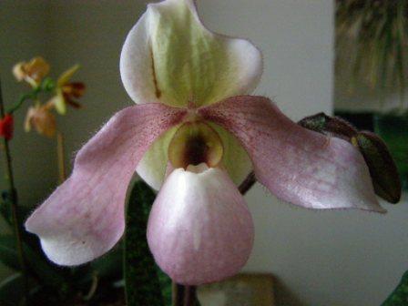 Můj nový úlovek. Jmenuje se Pap.Delenatii "Pink" (od Cameleon Orchidee). Předpokládám, že je to hybrid, který pouze převzal obchodní název po jednom ze svých rodičů. Příloha: