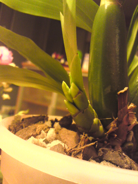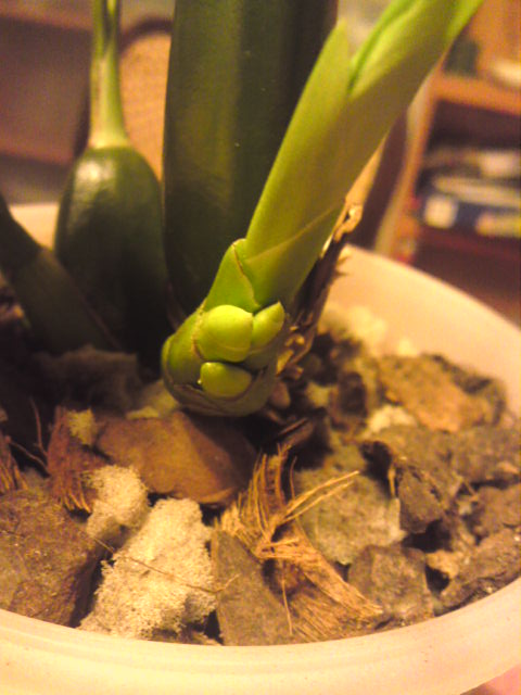 Cosi se mi tlačí z nového výhonu na mém Bollopetalu. Vypadá to jako květní puky (jsou celem 3), ale nějak se mi to nezdá - když jsem ho koupila, kvetlo z velké pahlízy. Co by to mohlo být?