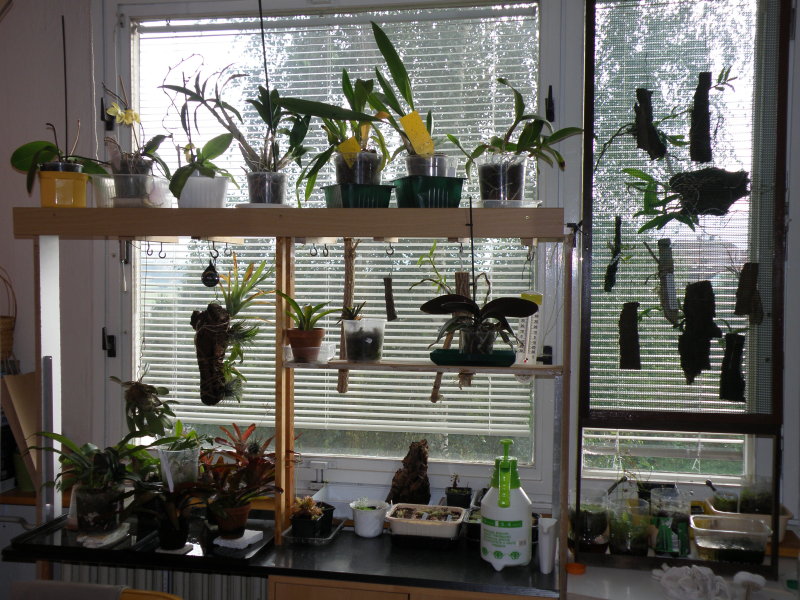 Tak jsem dva dny usilovně pracoval na vytvoření více místa pro zimování orchidejí. Večer, když jsme s manželkou usínali, jedná se o parapet ložnice, jsme si spolu připadali jako na takové miniaturní výstavě v Chotči. :mrgreen: