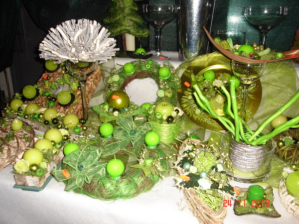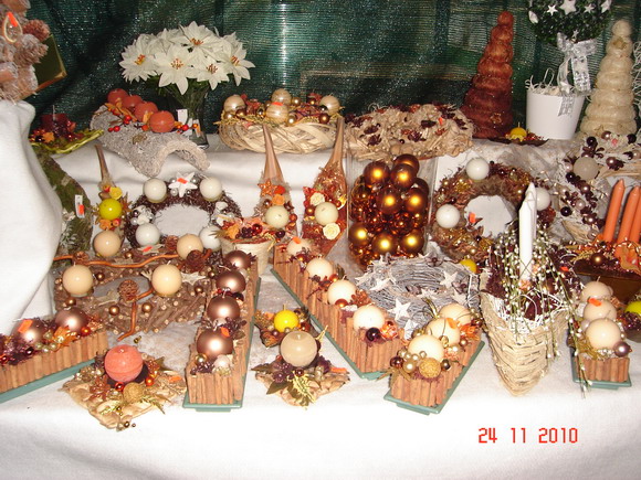 Před chvílí jsem se odtud vrátila. Z orchidejí mají ohromná Cymbidia, falenáky,pár cattlejí a nějaké střevíce. Velký výběr bramboříků všech barev a velikostí, vánoční hvězdy,koupila jsem si žlutý vánoční kaktus. Ty dekorace, co Věrka vyfotila, rychle mizí, co se komu líbí, si může zaplatit a odnést.