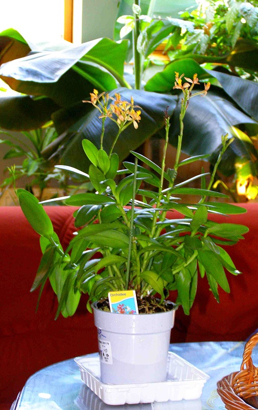 Prozkoumal jsem to,našel www stránky a byl to výrobce té plastové kartičky.Ale pak jsem trošku pátral a našel,že je to Epidendrum obchodní název Ballerina Tropical,takže hybrid.No snad poroste,měla by to být odolná rostlina. http://orchidej.wz.cz/epidendrum.html