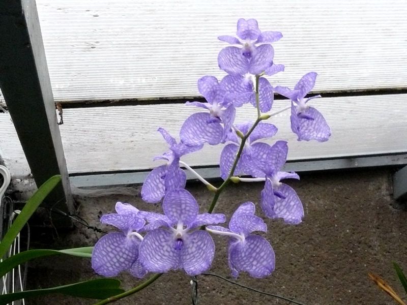Míra píše: Vandy pěstuji ve velice hrubých kůrových substrátech s malým podílem rašeliny. V zimním období jsou v temperovaném skleníku, kde noční teploty poklesnou i k 13°C. Zálivka přes léto opatrná 1x týdně v zimě za dva až tři týdny a opět velice opatrná. Nesnášejí rosení a obzvláště vlhkost na list přes zimu, kdy se potom tvoří černé skvrny. Po celý rok mají rády hodně světla. Přesazuji jedenkrát za 4-5 let. Jakmile vyrazí nový kořen a dosahuje délky okolo 5-6cm, většinou začne směrovat do substrátu ale pokud ne, jemně ho přitáhnu roubovací páskou a postupně přitahuji až do substrátu vroste. Mezi pro mně nejkrásnější Vandy patří např. V.coerulea a sanderiana. Sanderiana je mnohdy uváděna jako Euanthe. Kříženci Filipínských Vand mají vlastní pojmenování Vandanthe. Tito kříženci se vyznačují oblejšími listy a vysokým nárokem na světlo obdobně jako Vanda teres (dnes Papilionanthe) Květy jsou hodně pravidelné a zakulacené. Pěstuji stejně ale co nejblíže ke sklu a na plném slunci po celý rok. Míro a jaké používáš nádoby? Můžeš dát fotku celé rostliny i s nádobou?