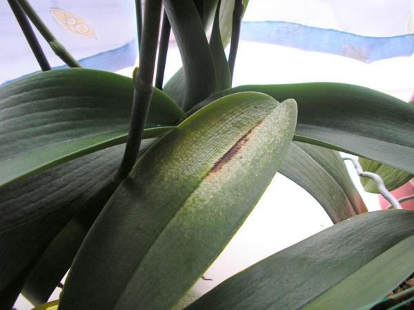 ooops, Vy nás ale zásobujete.... Většina zde uvedených rostlin je třeba přesadit a květní stvoly odstříhat. Keiky odstřihněte i kusem květního stvolu (cca 3cm na každou stranu) a zasaďte zvlášť do menšího květináčku (cokoliv průhledného - kelímek, 0,5 l PET atd). Přijde mi, že povrch substrátu je poněkud zasolený a rozložený a vrchní kořeny spáleny solí (na moc měkkou zálivkovou vodu to nevypadá  ). Při výběru substrátu v obchodě se obloukem vyhněte všem rašelinovým substrátům. Složení by mělo být napsáno na obale. Na dno květináče dejte vrstvu nalámaného polystyrenu, pak větší kusy kůry vybrané z koupeného substrátu a nakonec vše ostatní. Pokud bude substrát obsahovat větší množství jemných částic, tak jej nejdříve prosijte. U rostliny, která přišla o srdíčko, postupujte stejně, ale buďte nanejvýš opatrná při zálivce. Na poškozenou tkáň by neměla přijít voda a když, tak musí rychle oschnout. Co se zasaženého listu týče, tak mi to na slunce nepřipadá. Asi bych doporučil postiženou část odříznout nejlépe vydezinfikovaným nástrojem. U Cambrie je z pokrabacených listů zřejmá nesprávné zálivka. Je ale velice těžké říci jak by to mělo být správně. Zkuste ještě (pokud se Vám to podaří) vyfotit detail listu se skvrnami z horní i spodní části. Hezký den Pavel