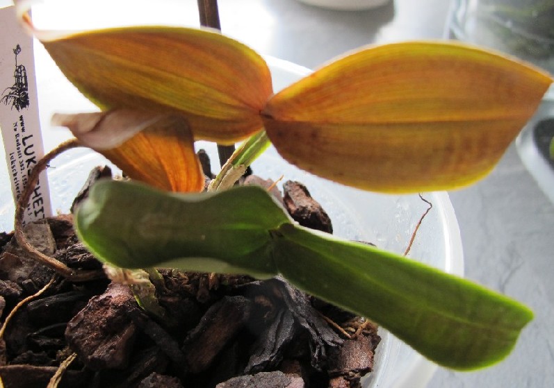 Míra píše: Výhon je pěkný ale druhý snímek ukazuje vysušenou rostlinu. Ono jen rosení asi nestačí. No a že se výhon pozastavil? Může to také být konec, pokud ve starých pahlízách nebude dostatek živin aby stačil zakořenit. Tak tak, v tomhle stavu je těžké rostlinu rozdýchat. To ale vůbec není vaše vina. Ta už musela být načatá když jste ji kupovala. Takhle zničit rostlinu trvá týdny nebo měsíce.