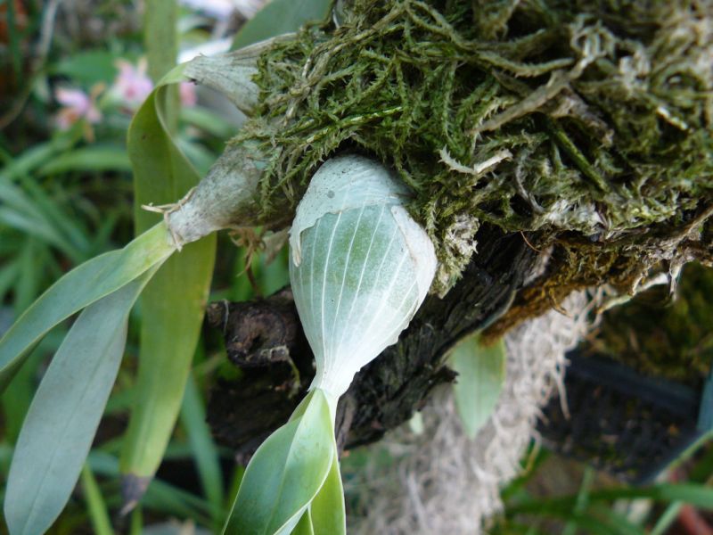 Míra píše: Jedna z velice krásných silně vonících orchidejí. Květ jako z vosku. Existuje několik variet, které se liší nejen rostlinou ale i květem. V domovině často zavěšovaná nad vchody pro svoji výraznou citronovou vůni. Mám dvě variety, zatím kvete jen jedna. Traduje se, že tato rostlina je náročná a je prubířským kamenem. Dostal jsem ji kdysi ve svých začátcích a mám ji dodnes, což pověsti o náročnosti vyvrací.Pěstuji ji navázanou na révě a to tak, že dám trochu sphagnam do kterého zabalím nepatrně substrátu, to přivážu na révu a teprve na takto připravenou větvičku rostlinu vyvazuji. Přes zimu je v chladném skleníku s dostatkem světla a přes léto visí zavěšená v šeříku a každý večer je překropena vodou. Roste a kvete velmi spolehlivě. Myslím, že není důvod aby se někdo této rostliny bál. Také se mi zdá, že fámy o její náročnosti jsou neopodstatněné.