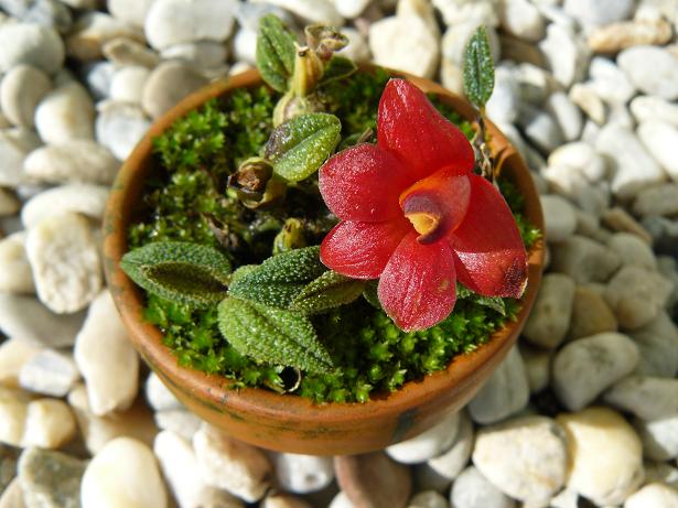 Tak konečně rozkvetlo moje první cuthbertsonii. Je sice pěkně červené, ale bylo zakoupeno u Popowa jako bicolor, což mne trochu mrzí. Zjistil jsem, že tato rostlina je více náchylná k nízkým nočním teplotám, než další dvě pěstované. Při teplotách kolem pěti stupňů (což je pro tento druh ještě optimální) jí opadaly původní listy, ale nové výhony zůstaly nedotčeny. Napadají mne dvě možnosti vysvětlení: buď je rostlina oslabená kvetením, nebo je původem z teplejších poloh (toto dendrobium se vyskytuje v dost velkém výškovém rozpětí 750-3500m).