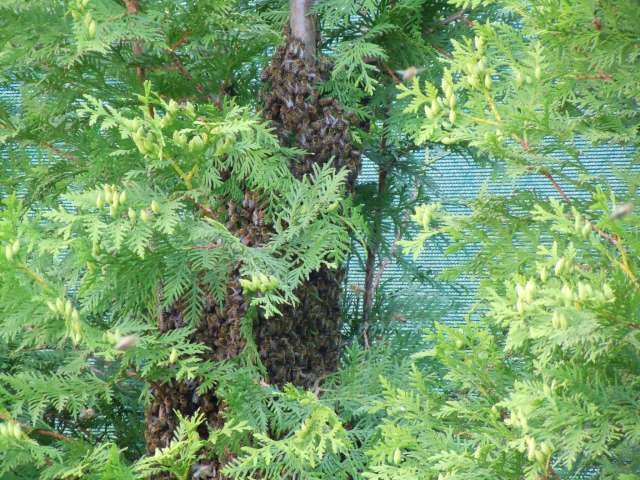 HAKI píše: VLADAS píše: Jedna fotka bez nálady - asi metrový roj na zahradě To máš vážně na zahradě?  To přijelo dnes na zahradu specielní komando aby to odklidili  Už ne, ale dva dny tady opruzovaly. Báli jsme se přiblížit. V blízkosti nalétávaly na cíl jak stihačky