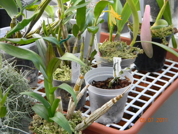 Karlos píše: Eva: koukám že jste se docela rozjela(rozšoupla). To bude za chvilu pořádná sbírka hádám. jj, hezky se to tam množí. A co se toho vejde ! Tam, když dám pět nových rostlin, tak si toho nikdo ani nevšimne  Pořád převažují Dendrobia, ale na dalším místech jsou Coelogyne, Odontoglossum, Encyclie, Cattleye a Laelie a Paphiopedilum. Samozřejmě druhů je víc, ale to jsou vždy tak třeba dvě tři rostliny.