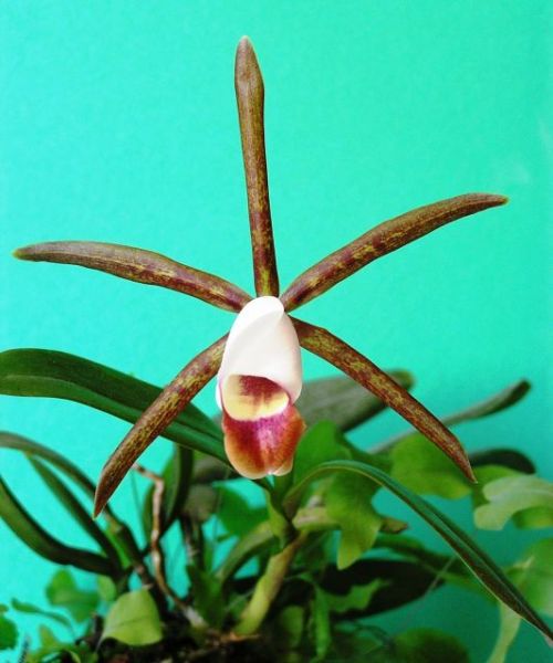 Tak už jsem se konečně dočkal! Květ je proti rostlině obrovský (10cm) a je nádherný (je tak ošklivý až je krásný  ). Moc jsem se na ni těšil a mám z ní obrovskou radost  . Pro mne je to jedna z nejhezčích orchidejí.
