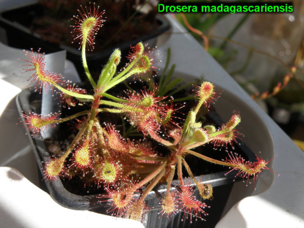 Zdravím, vážení přátelé pěstitelé. Jelikož se musí myslet na zadní vrátka, momentálně mám na mysli mé zimovací prostory, zkusím se s vámi podělit o přebytky několika druhů rosnatek. Jde o začátečnické druhy rosnatek - Drosera capensis- dvě barevné formy květů, Dr.capillaris, Dr.dielsiana, Dr.spatulata, a pro fajnšmekry i několik Dr.madagascariensis. Jde minimálně o 1,5 leté rostliny o průměru růžice 2,5-5cm, čili velice skladné rostlinky (některé již i nakvétající), navíc velmi užitečné, protože vám tyto orosené krásky vychytají veškeré okolní hmyzí společenstvo, tedy mnohdy i okolní poletující škůdce. Jelikož tyto rostliny není možné z důvodu jejich křehkosti možné zasílat zasazené, rostlinám vždy ponechávám větší kořenový bal i se substrátem. Po vyjmutí z Pe-zip sáčků kvůli udržení vlhkosti během přepravy, stačí rostliny zasadit do směsi v poměru rašelina :písek 1:1 až 2:1, podlít měkčí vodou, nebo alespoň převařenou a hotovo. Nabízené Rosnatky jsou ty nejlehčeji pěstované pro všechny začátečníky. Vše ,co potřebují k životu je voda, přiměřené teplo a světlo , kterého prosvítá mezi listy orchidejí až dost, takže jimi lze klidně vyplnit mezery mezi květináči větších rostlin a to nejen orchidejí . Kromě nachytaného hmyzu vám poslouží i tím, že vám odpařující se voda z podmisky pod rosnatkou ovlažuje vaše pěstované miláčky. Budu standartně zasílat po deseti kusech od všech druhů, ať to máte pestré, a můžete si sestavit kompozice dle svých představ. Těmto rostlinám budou bohatě stačit dva nejlépe čtvercové kvítníky (jsou skladnější). Cena lidová 150 korunek....pochopitelně si jich můžete vzíti i více než 10kusů , budu jen rád, tato sezóna byla opravdu úspěšná. Na vše vaše případné dotazy rád odpovím, ale žádný problém by neměl s pěstováním nastat. Případně, kdo má zájem , mám navíc několik odnoží vícero druhů Neoregelií, a odnože kapradiny Drynaria rigidula. Případní zájemci nechť mne kontaktují přes SZ či mail: RRossler zavináč seznam.cz.