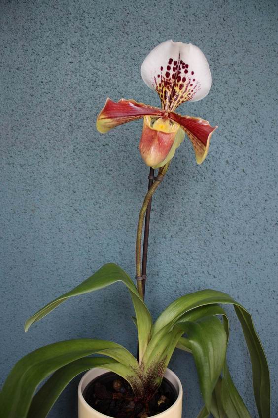 Dobrý deň , kúpila som si toto paphiopedilum a neviem, o ktorý druh sa jedná, na štítku to nebolo (Hornbach, vlastne tam nebol žiaden popis  ). Má zelené listy bez vzoru a kvet je veľký cca 8-10 cm na pomerne dlhej asi 30--35 cm tmavej stonke s jemnými chlpkami. Máme ho s kamarátkou rovnaký, uvažujeme, či to nemôže byť Paphiopedilum Insigne (podla obrázkov na nete). Alebo je to nejaký jeho kríženec? Ak niekto viete, o ktorý druh ide a ako ho správne pestovať, tak prosím poraďte. Radi by sme predišli chybám v zálievke, telote, či treba dodržať obdobie pokoja a pod. Vopred ďakujem. Je to môj prvý črievičník.