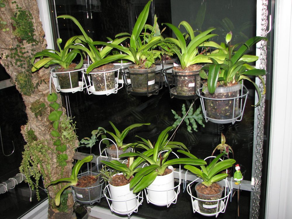 Tak som dobre spravila, že je na schodisku v paneláku? Má dostatok svetla z okna, mimo prievan a nižšia teplota než v byte, asi tak 15-16 st, v mrazoch bude asi aj menej. Má obmedzenú zálievku, ale na substrát som položila živý mach a ten rosím tak raz za 2-3 dni, aby bol stále zelený a mierne vlhký. Substrát prelejem tak raz za 10-14 dní, ani v tej vode nestojí, len to tam je, čo sa pri preliatí zachytí. Dávam pozor, aby sa voda nedostala medzi listy, a hned po odkvitnutí som ho presadila, bolo tam to sfagnum. Zatial tlačí novú hluzu. Tak asi to nie je až také zlé a v lete bude v chládku vonku.